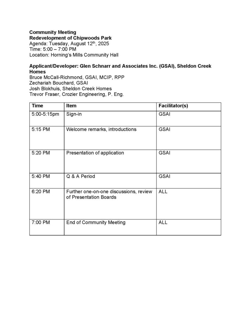 An in-person Public Information Session has been scheduled for Thursday, October 9, 2025, from 4:00 p.m. – 7:00 p.m. at the Horning’s Mills Community Hall located at 14 Mill Street in Horning’s Mills.